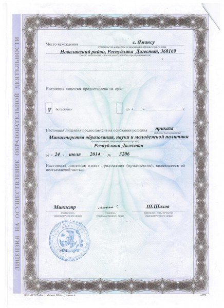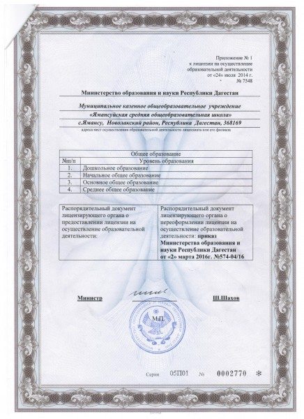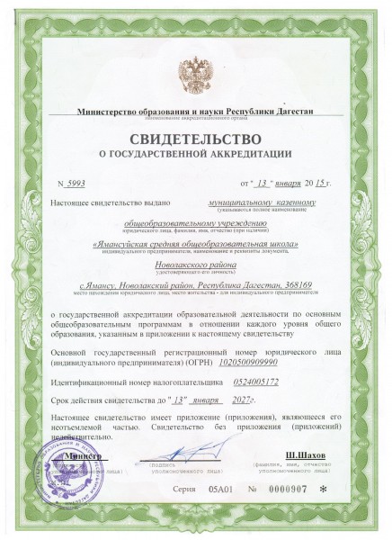 | Адрес местонахождения образовательной организации* | 368169, Новолакский район, с.Ямансу РД |